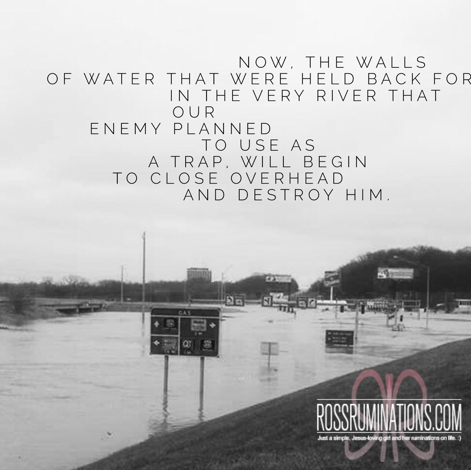 But the walls built upon the firm foundation of God were the only fortifications that could withstand the strain. No, we couldn’t control the storms, but within the safety of these walls, floodgates could be left wide open without fear. Friends and neighbors would gather together and lay sandbags of prayer around the borders of our lives, as detours rerouted our paths onto unfamiliar roads and our faith moved us onto higher ground in Him. Then, when pressure levels seemed more than we could withstand, the Son came out. Now, the One who commands the seas is ready to step in and part the Red Sea.