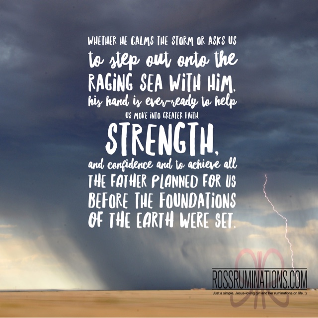 Be encouraged today, my friends. We’re all on a road that has been filled with unknown conditions. But as we trust in and rely on God’s never-ending mercies, He will surely light our way and we’ll reach our destination in Him. Whether He calms the storm or asks us to step out onto the raging sea with Him, His hand is ever-ready to help us move into greater faith, strength, and confidence and to achieve all the Father planned for us before the foundations of the earth were set.